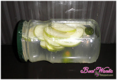 Untuk gambar kedua pula, air detox dengan perahan lemon, limau kasturi dan hirisan epal hijau. BW gunakan separuh lemon yang diperah airnya, ditambah dengan sebiji limau kasturi dan separuh epal hijau yang dihiris. Yang ni dari segi rasa not bad. Boleh sangat diminum tanpa rasa terpaksa pun kay. Epal hijau pula masih sedap dimakan, cuma dah tak ada rasa epal, rasa lemon ajer.